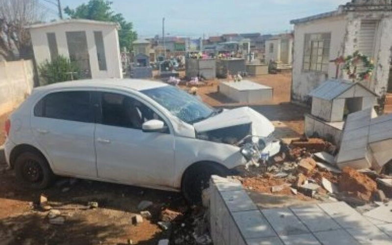 De acordo com o boletim de ocorrência, o condutor do Gol branco trafegava pela rua João Paulo II, no bairro Parque Morumbi, quando perdeu o controle da direção, bateu no muro do cemitério municipal e destruíu um túmulo.