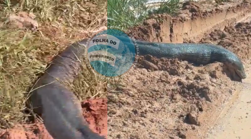 Foto: Reprodução | Neste domingo, 25 de maio de 2025, moradores flagraram uma cobra de grande porte morta às margens da estrada Transgarimpeira, que liga os distritos de Moraes Almeida a Crepurizão, no sudoeste do Pará.