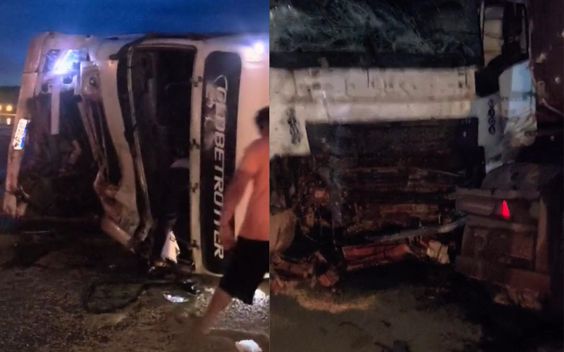 Segundo relatos de testemunhas, um dos caminhões desviava de buracos na rodovia e acabou colidindo, causando o engavetamento.
