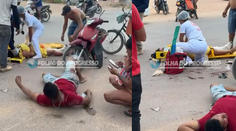 Foto: Reprodução | Na tarde desta segunda-feira, 30 de junho de 2025, um acidente de trânsito envolvendo duas motocicletas foi registrado na rua Cristalina, esquina com a Avenida Brasil, em Novo Progresso (PA).