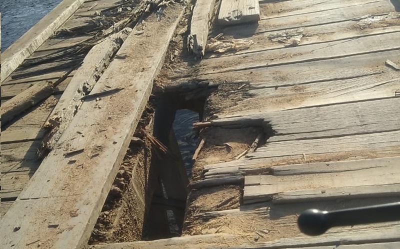 Conforme os relatos, há vários buracos sobre as tábuas (pranchas), que com o tempo de uso foram apodrecendo e danificadas. Moradores fazem apelo as autoridades, porque o local faz a principal ligação com área rural, Flona Jamanxim e a região garimpeira no município de Itaituba.
