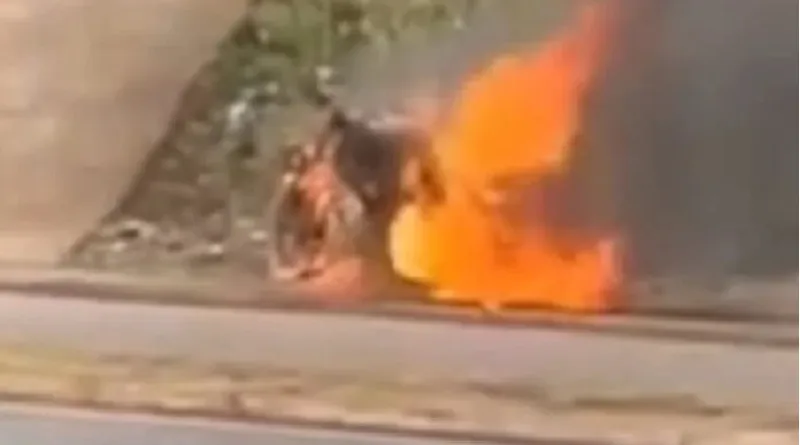 Populares registraram o momento em que as chamas consumiam o veículo. Ainda não há informações sobre as causas do incêndio nem sobre feridos.