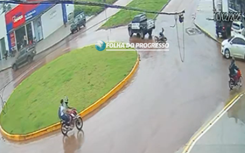 Foto: Reprodução | Na manhã desta segunda-feira (10), um motociclista se envolveu em um acidente na rotatória entre a Avenida Brasil e a Avenida João Atiles, em Novo Progresso. O ocorrido por volta das 11h52, conforme incidente registrado por câmeras de segurança.