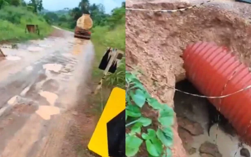Nos vídeos, é possível observar uma estrutura improvisada na estrada, onde foi utilizado um bueiro para realizar o aterro. No entanto, devido às fortes chuvas que têm caído sobre a região, o local está sendo severamente prejudicado por desmoronamentos. Isso deixou a parte inferior da estrada oca, aumentando o risco de rompimento da rodovia e potencialmente provocando acidentes graves aos veículos que passam pelo local.