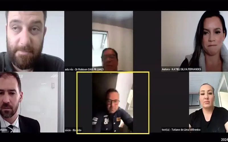 Participavam da audiência o réu, que é empresário em Curitiba, o advogado dele, o juiz, a autora da ação, o advogado dela e uma testemunha.